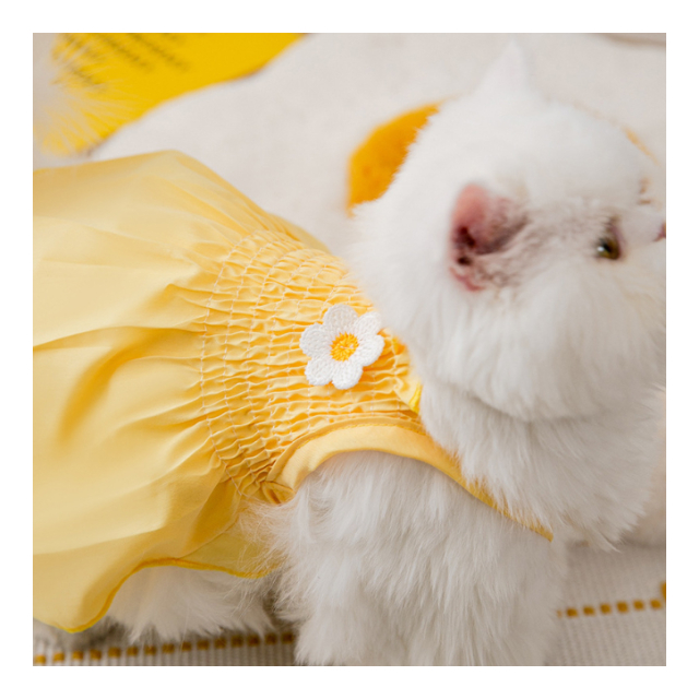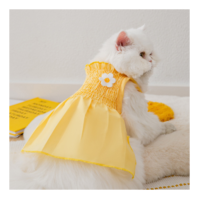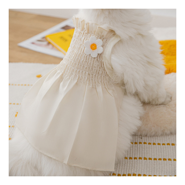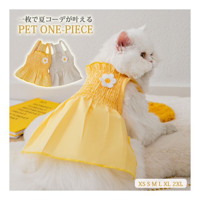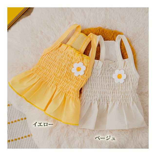 春夏ペット服 ペット ワンピース リネン調 花ワッペン 犬猫ペット服 中小型犬 ウェア