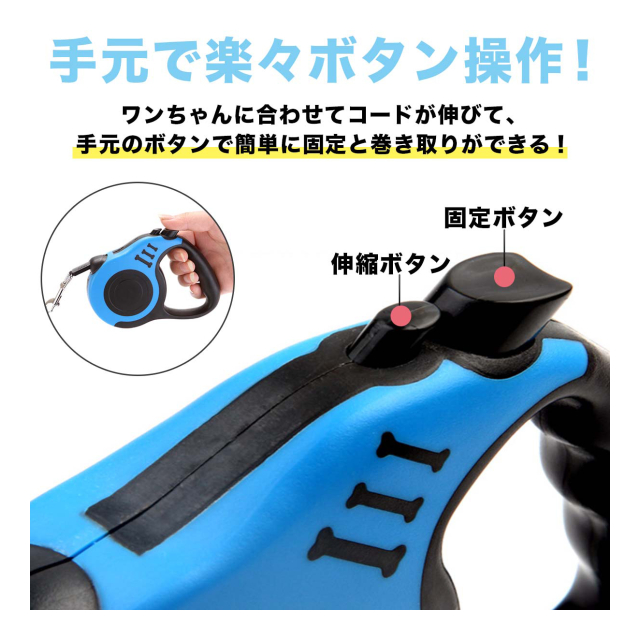 ・片手操作も可能なワンタッチ式で、リードの固定・解除(伸縮)がお手軽に!