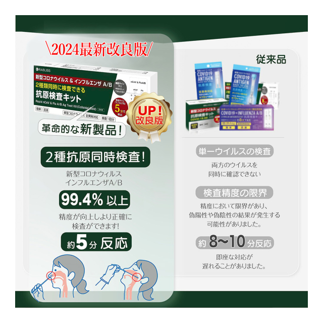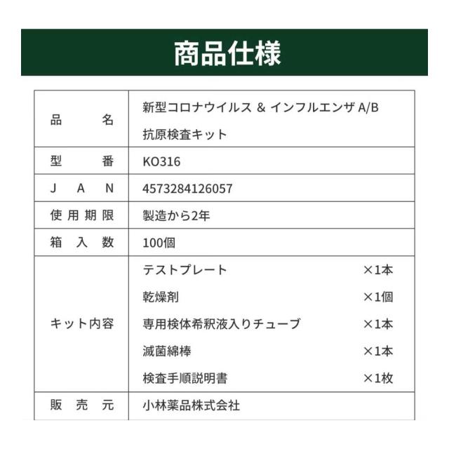 小林薬品 インフル/コロナ同時検査 2024年最新型変異株対応 抗原検査キット コロナ検査キット 鼻腔検査 新型コロナウイルス インフルエンザ A/B 3種類同時に検査 オミクロン株対応 変異株対応 自宅 5分 セルフ検査 (研究用)