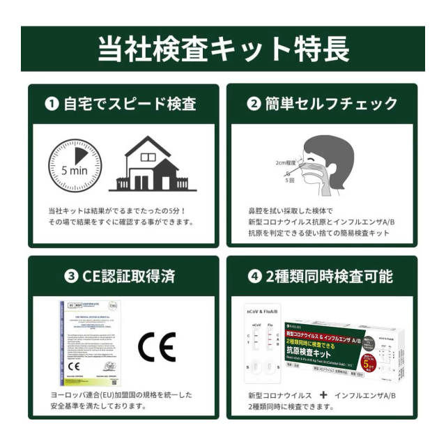 【2024新型インフルエンザ対応】 5分判定 鼻腔検査 コロナ インフル 同時 検査 インフルエンザ A/B 自宅対策 コロナ検査キット コウゲン検査キット インフルエンザ 新型コロナ コロナ抗原検査キット 自宅用 研究用 (3)