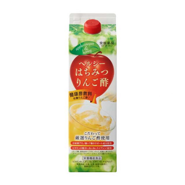 有機りんご酢をベースに、健康をサポートする分岐鎖アミノ酸(L‐バリン・L‐ロイシン・L‐イソロイシン)とオリゴ糖、酒粕由来ペプチド、γ‐アミノ酪酸(ギャバ)、高麗人参エキス、アラニン、ローヤルゼリーエキス、ぶどう種子エキスを配合した健康酢飲料です。また、健康に必要なビタミンB1、ビタミンB2、ビタミンB6、ナイアシンも補給できます。はちみつも配合し、さわやかなりんご酢飲料に仕上げておりますので毎日おいしくお召し上がりいただけます。