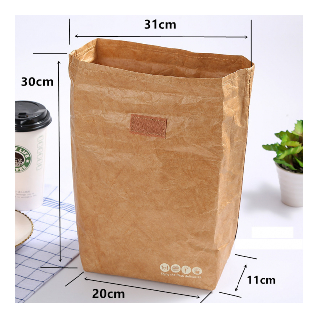 紙袋風ポーチ 保温バッグ タイベック マジックテープ付き 6L