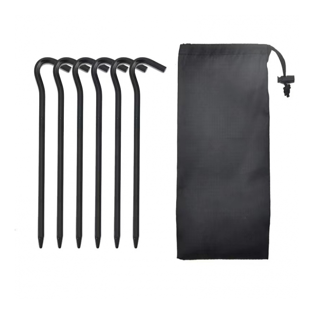 鍛造ペグ6P 18cm ロープ止めJ型 釘 タープペグ テントペグ 収納ケース付き