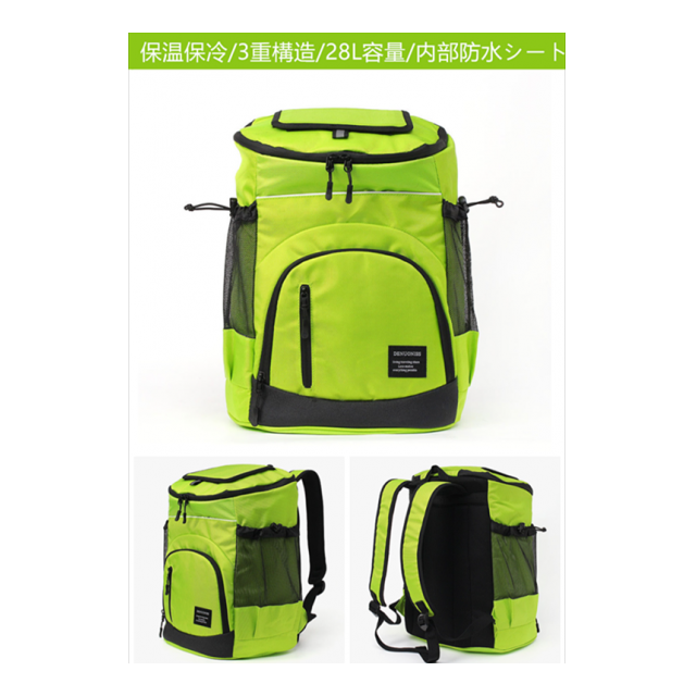保冷バッグ リュック型 クーラーバッグ 大容量 リュックサック 宅配デリバリー用 アウトドア 保温リュック 28L ネオングリーン