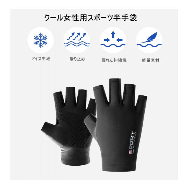 クール女性用スポーツ半手袋