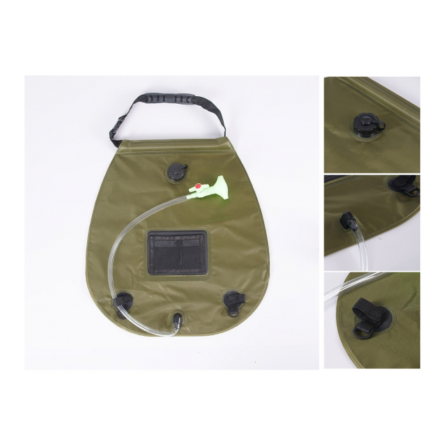このシャワーバッグには、携帯用シャワーヘッドが付属しており、簡単に取り付けられます。