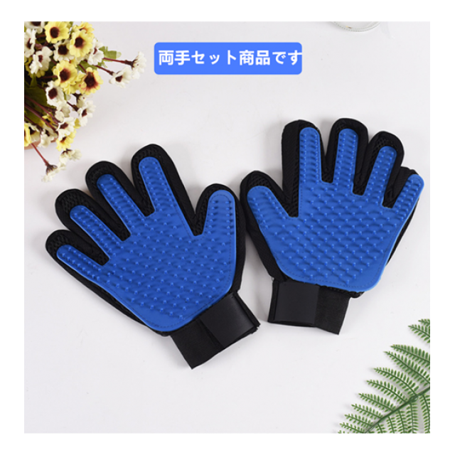 グルーミング ペット用 両手 手袋ブラシ(ブルー)