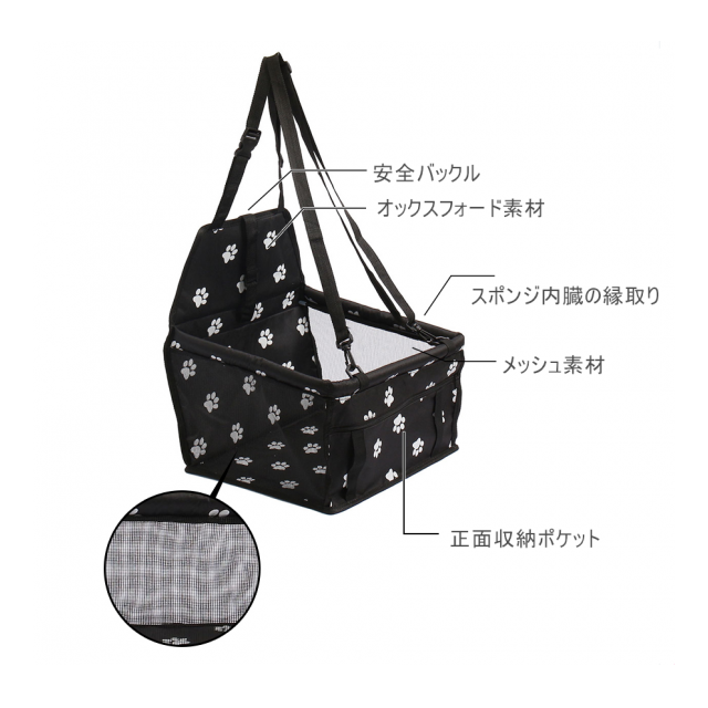 犬用カーシート ペット用 ドライブボックス 車用 犬用品 ペット用品 爪印 ブラック