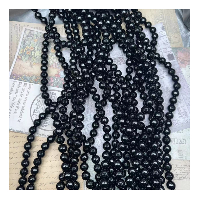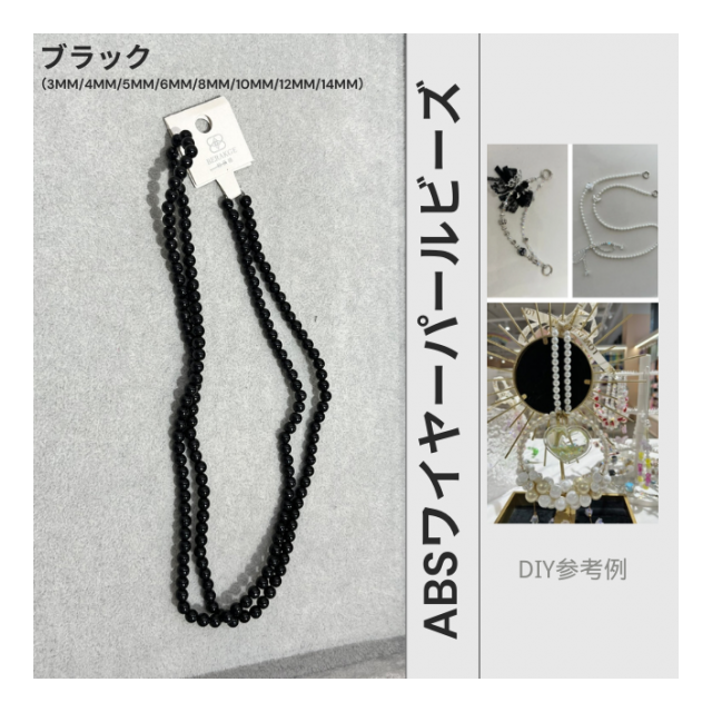 高輝度・強光沢のABSワイヤーパールビーズ シェルパール DIYブレスレット ストランドブレスレット アパレルアクセサリーに最適 ABS水磨きスレッドパール【ブラック】