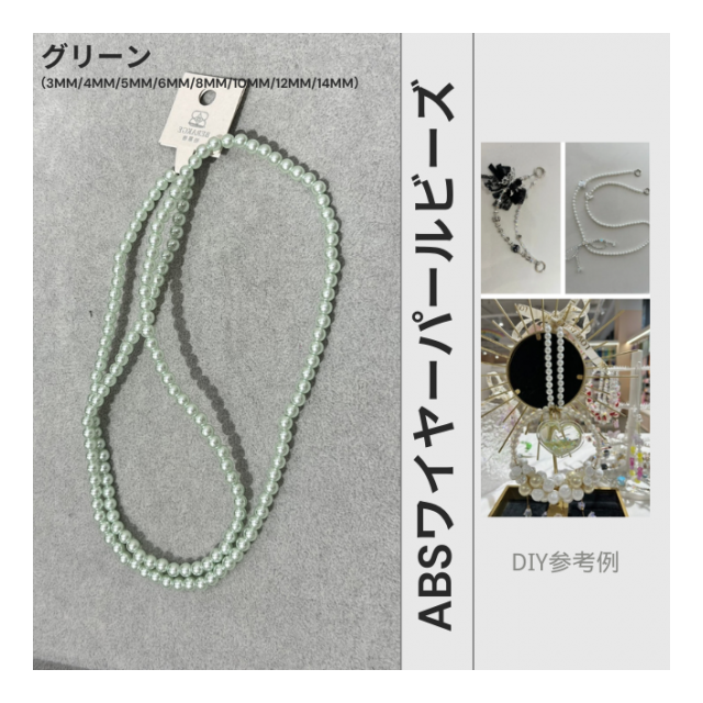 高輝度・強光沢のABSワイヤーパールビーズ シェルパール DIYブレスレット ストランドブレスレット アパレルアクセサリーに最適 ABS水磨きスレッドパール【グリーン】