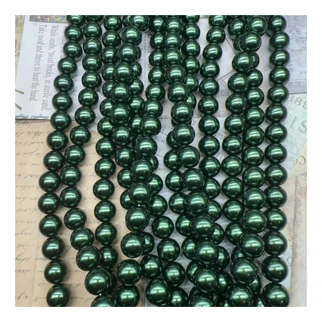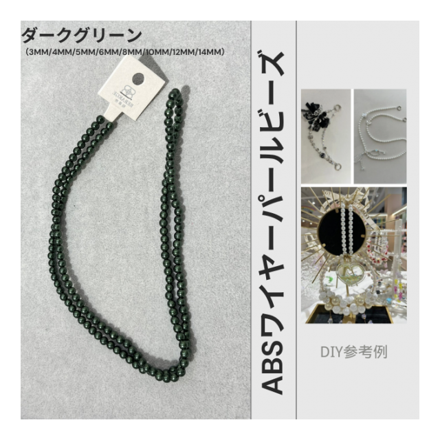 高輝度・強光沢のABSワイヤーパールビーズ シェルパール DIYブレスレット ストランドブレスレット アパレルアクセサリーに最適 ABS水磨きスレッドパール【ダークグリーン】