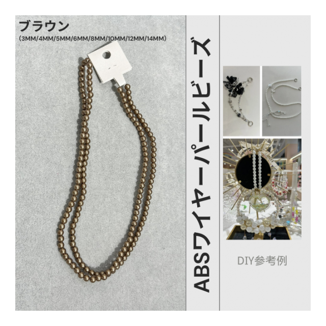 高輝度・強光沢のABSワイヤーパールビーズ シェルパール DIYブレスレット ストランドブレスレット アパレルアクセサリーに最適 ABS水磨きスレッドパール【ブラウン】