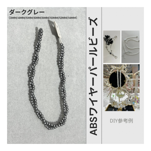高輝度・強光沢のABSワイヤーパールビーズ シェルパール DIYブレスレット ストランドブレスレット アパレルアクセサリーに最適 ABS水磨きスレッドパール【ダークグレー】