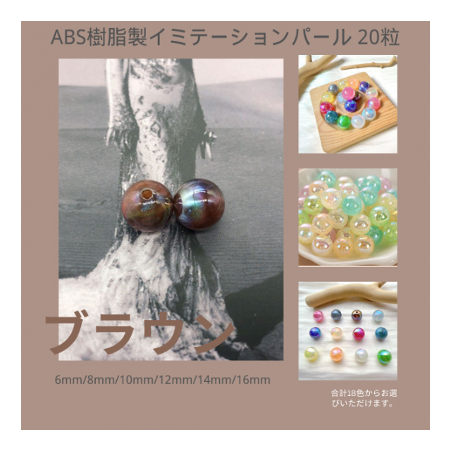 パール マーメイドスターリースカイカラー ABS樹脂製イミテーションパール ラウンドビーズ DIYジュエリー用パーツ 20粒入り ブラウン