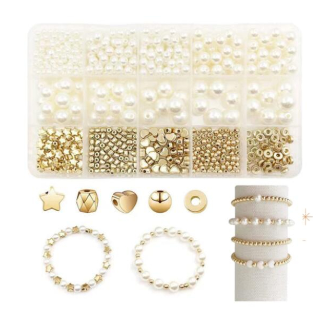 DIYジュエリーキット パールビーズセット アクセサリーパーツ 手作りアクセサリー ブレスレット材料 ネックレスパーツ イヤリング素材 ビーズクラフト 模造真珠 ゴールドパーツ スターチャーム ハートビーズ 収納ケース付き 初心者向け 多目的キット アクセサリー制作 ハンドメイド材料 ビーズ詰め合わせ クラフト用品 ジュエリー制作キット
