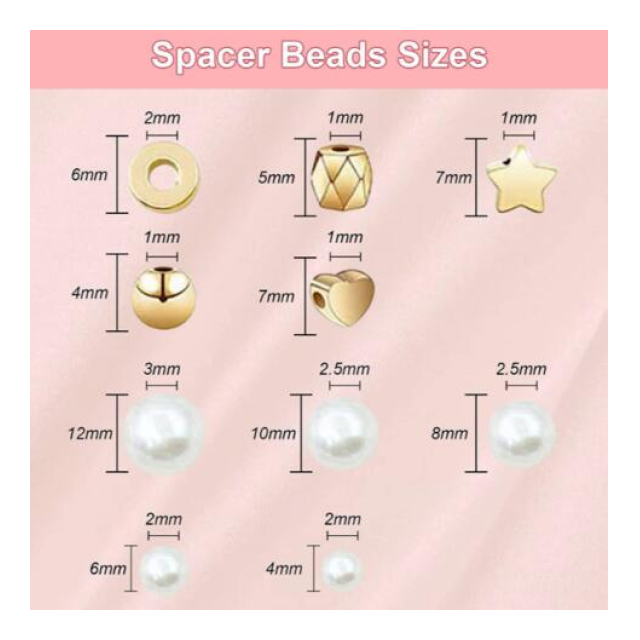 - 金属パーツ: 円形平面(50個)、丸玉(50個)、ハート型(50個)、筒型カット面(50個)、星型(50個)