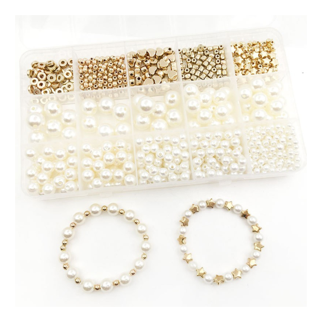 15格 720件 珍珠 DIY セット 五角星 間隔 珠 配件 手作り ブレスレット ネックレス イヤリング キット