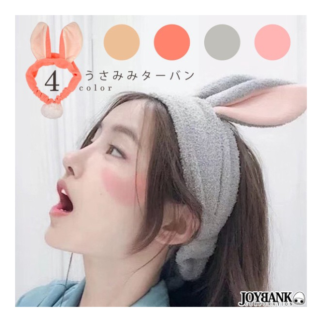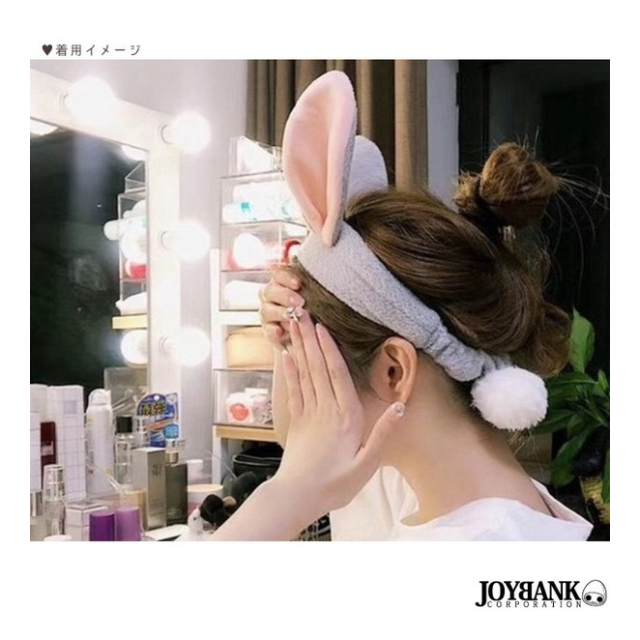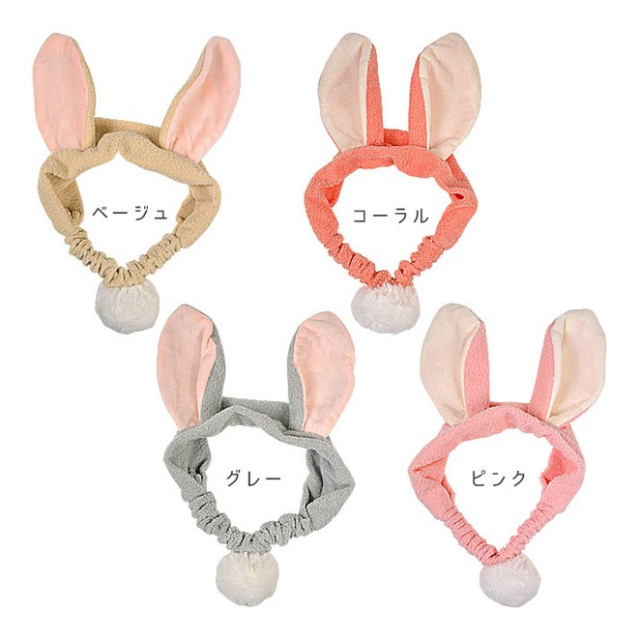 うさぎ耳が付いたヘアバンドで洗顔やお風呂タイムも癒されます。