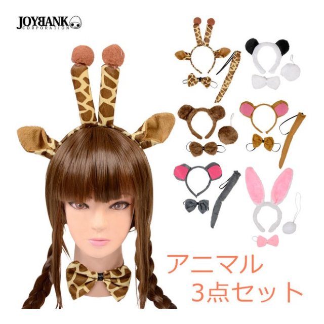 なりきりアニマル3点セット(カチューシャ・ネクタイ・しっぽ)【キッズコスプレ/発表会】