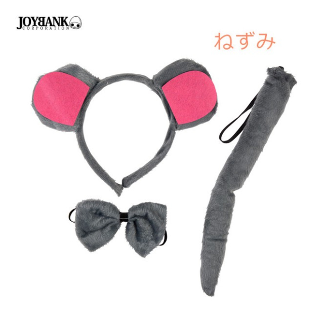 カチューシャ・蝶ネクタイ・しっぽの3点セットです。