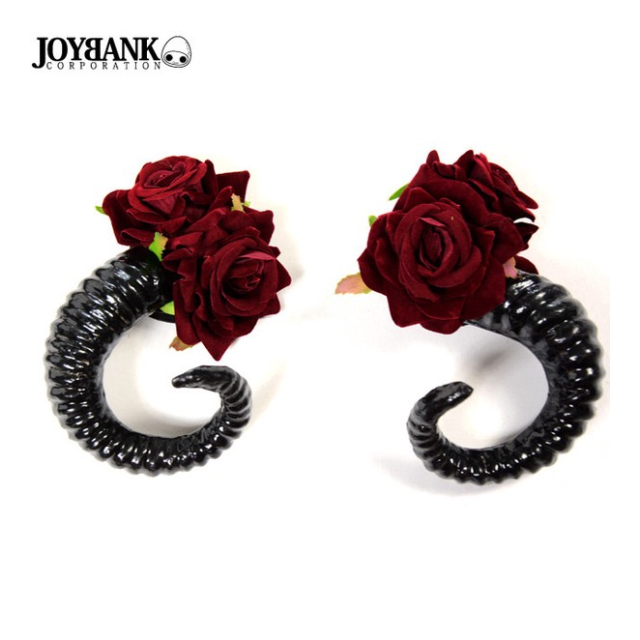薔薇飾り付き ひつじの角ヘアクリップ【ゴスロリ/羊/悪魔/コスプレ小物】