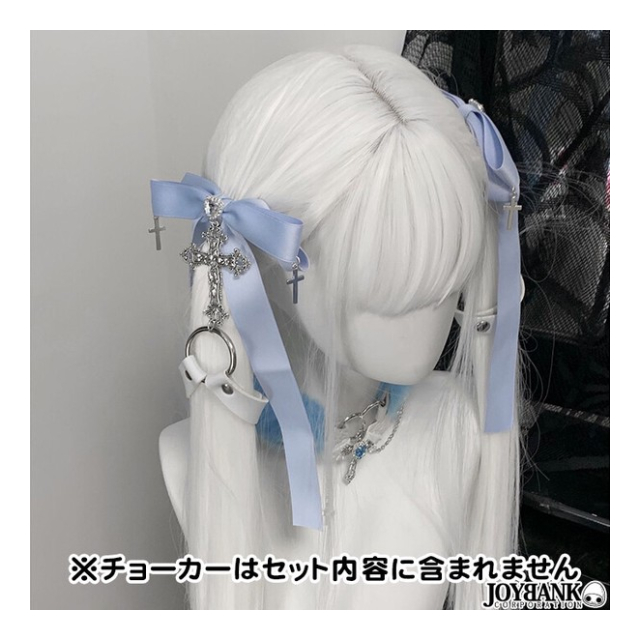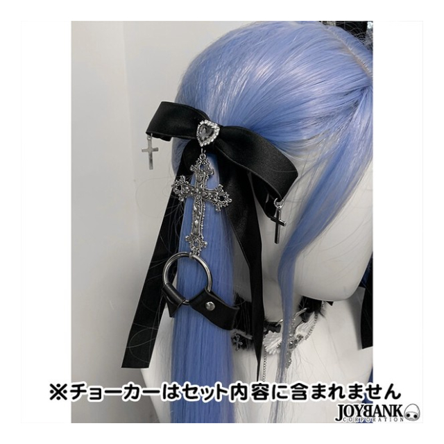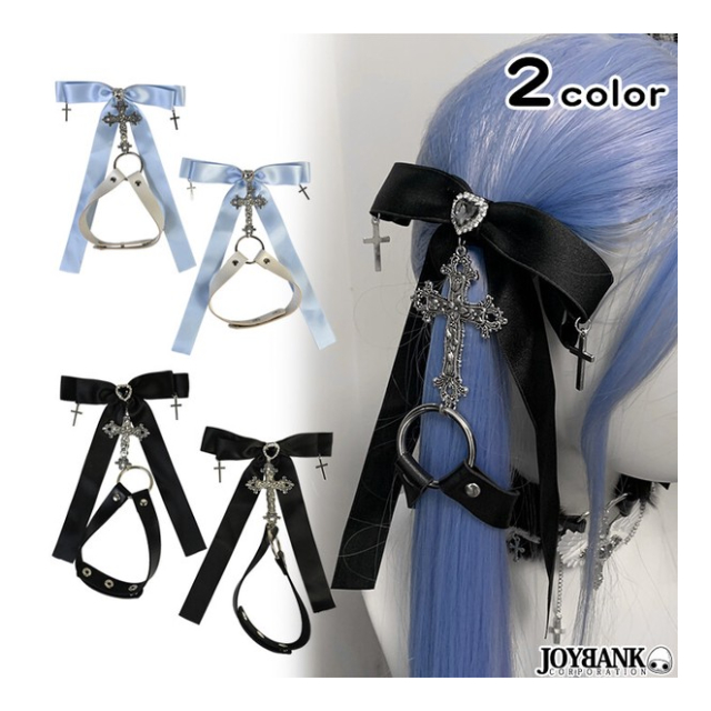 リボン×ハート×十字架×ベルト 地雷系ファッションにマッチする、キュートなヘアアクセサリーです。