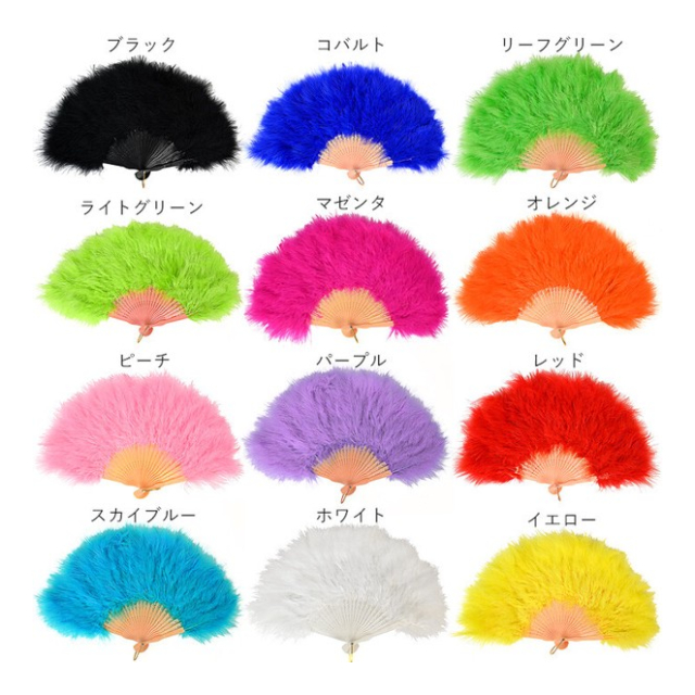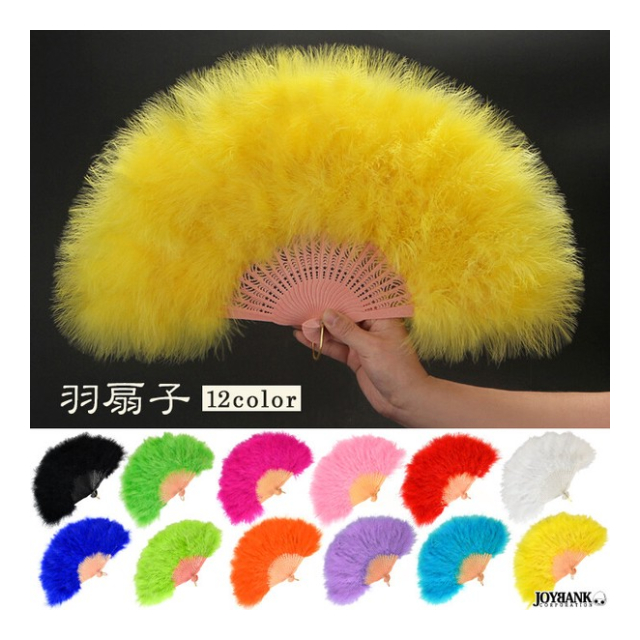 パーティーの仮装やイベントのコスプレ、チャイナドレスに合わせるなど、お手軽に使える羽根扇子です。