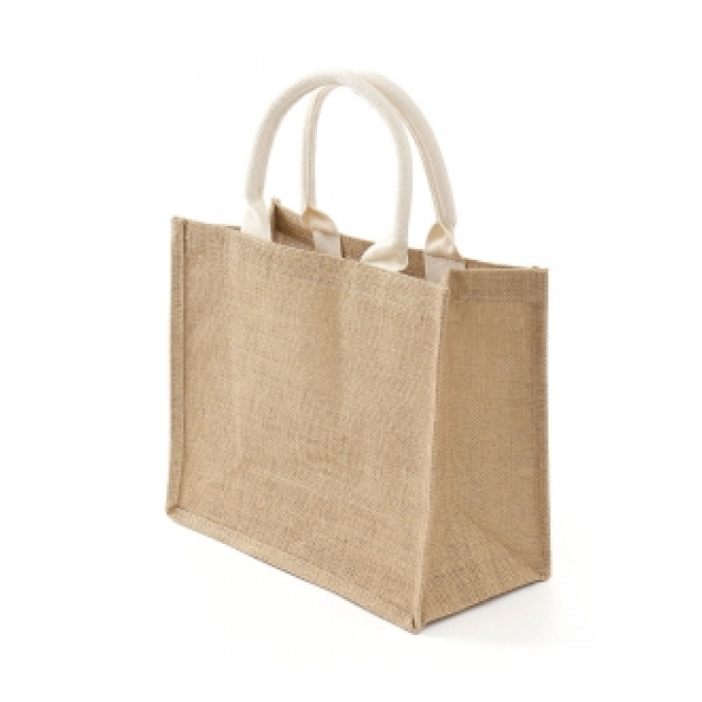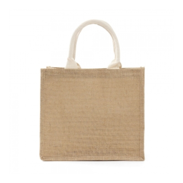 ナチュラル ジュートバッグ (31x27cm) ホワイトハンドル【リネンエコ/ギフト/ショッピング/サブバッグ/LOGO印刷可】