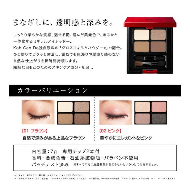 | 江原道 ミネラル アイシャドー パレット02 [JAN: 4589651801229] | 72 | 4,700 円 | ログインすると表示 |