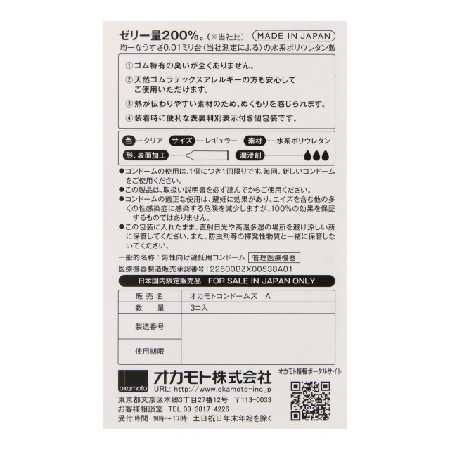 水系ポリウレタン製のコンドームです。