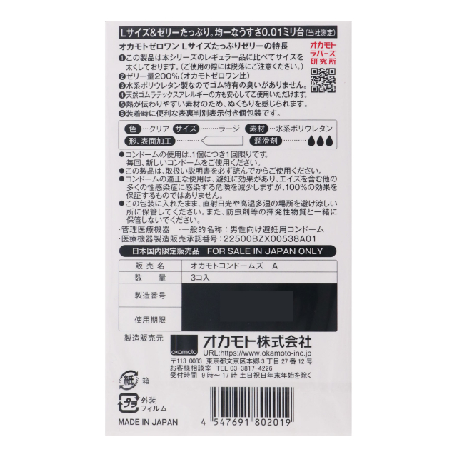 オカモトゼロワン Lサイズ たっぷりゼリー 3個入