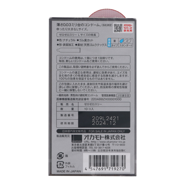 ○コンドームの使用は、1個につき1回限りです。毎回、新しいコンドームをご使用ください。