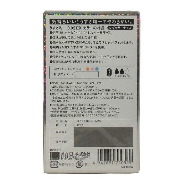 オカモト 0.02EX カラー 6個入