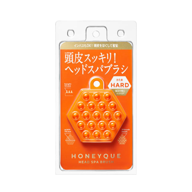 頭皮をスッキリほぐすハードタイプのヘッドスパブラシ。インバス・アウトバスで毎日手軽にヘッドスパ体験を楽しめます。握りやすい形状や満遍なく押せる棘山、収納に便利な穴フック付きなどのこだわり設計。シャンプーブラシや頭皮のコリが気になるときのヘッドスパブラシ、ツボを刺激するツボ押しブラシとして使用できます。かためのハードタイプは、頭皮をしっかりほぐしたい方に