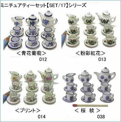 ミニチュア陶器ですが、いい仕事しています!!ちゃんと出来ています!!箱入りなのでそのままディスプレイして販売できます。ティーポット、シュガーポット、ミルク入れ、カップソーサー2種のシリーズが、12種類☆ 値段もお手ごろです。 希望小売価格¥600(税別)/セット