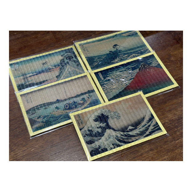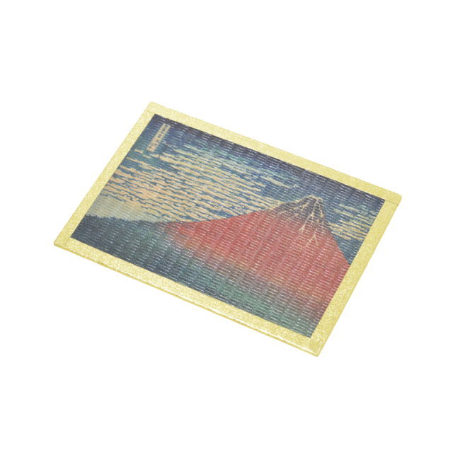 和紙畳生地を使用した畳絵葉書(ポストカード)は、表面はフッ素加工で仕上げておりますので、水滴や汚れは濡れたタオルですぐに拭き取ることが出来ます。縁部分には和紙を使用しています。畳には本来凹凸があり、きれいな印刷がしにくいものですが、特許技術を用いて畳に印刷されています。きれいな仕上がりです。