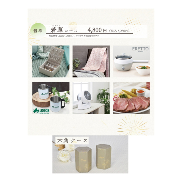 【六角ケース】存在感のある立体型ケース。金箔と亀甲の六角で縁起のよさを表しています。