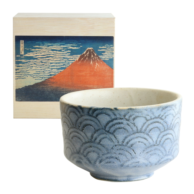 茶楽JAPAN 青海波 抹茶碗 木箱赤富士