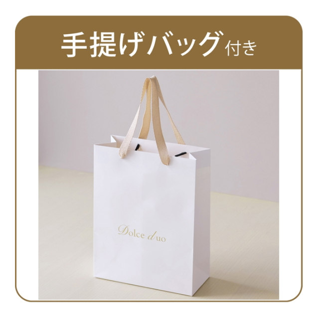プチギフトや席札、席次表などを入れて持って帰るのにピッタリサイズの丈夫な手提げバッグ付き。