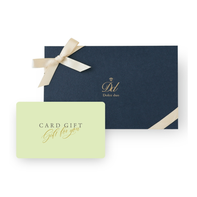 コンパクトでかさ張らないカードホルダータイプ。上質な紙の質感と金色の箔押しが高級感のあるカードホルダーに上品なシャンパンゴールドのリボンの装いでお贈りします。