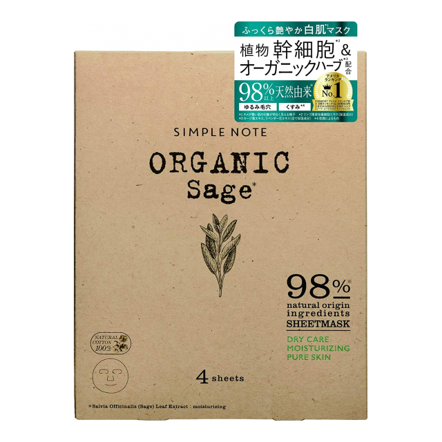 欠品中・シンプルノート オーガニックシートマスク ホワイト 日本製 フェイスパック