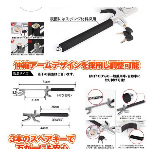車用 盗難防止用ハンドルロック 要在庫確認商品