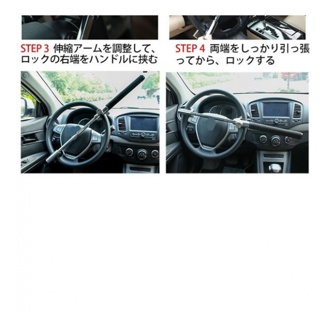 ハンドルに合わせて長さを調節できるのでほとんどの車でご使用いただけます。
