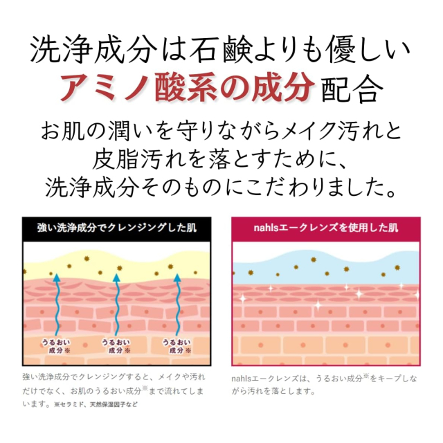 石鹸よりもお肌に優しい、弱酸性のアミノ酸系洗浄成分を使用したクレンジングジェル。