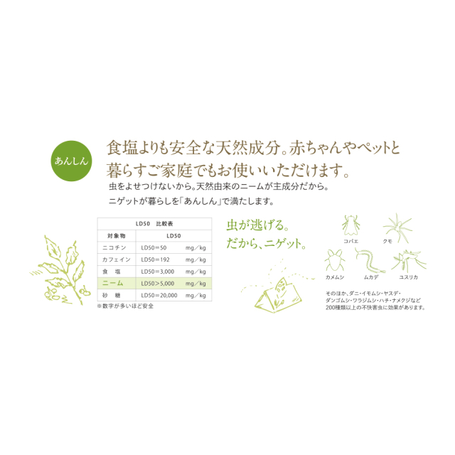 天然植物忌避剤ニゲット・ニーム抽出物・天然香料(微香性)・虫よけ・夏向き商材