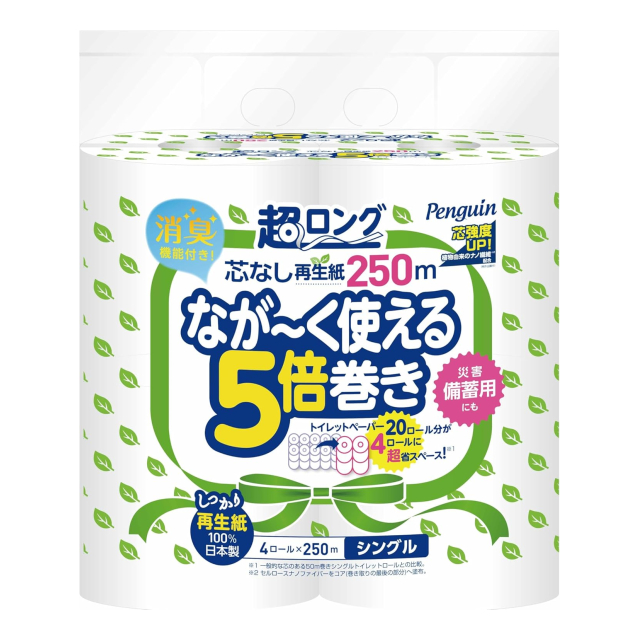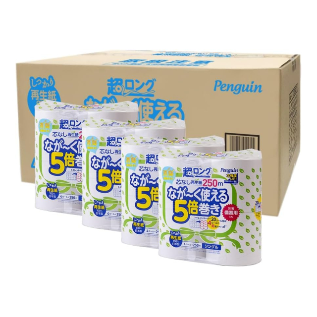 ネットで売れ筋・丸富製紙・ペンギン超ロングパルプ5倍巻 4Rシングル・日本製