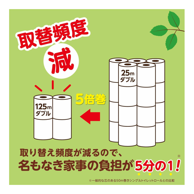 有芯ロール(50mシングル)の約5倍で取り換え頻度が大幅に減少します。