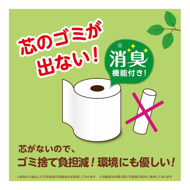 3. 省資源:芯が無く紙管のごみが出ません。最後まで使える芯なしロールです!