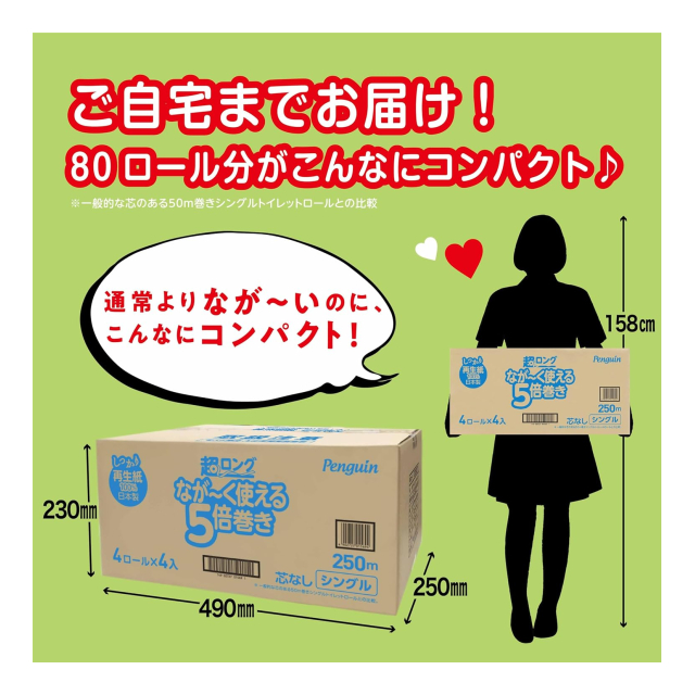 従来のロールサイズにぎっしり詰まった超長巻ロール。