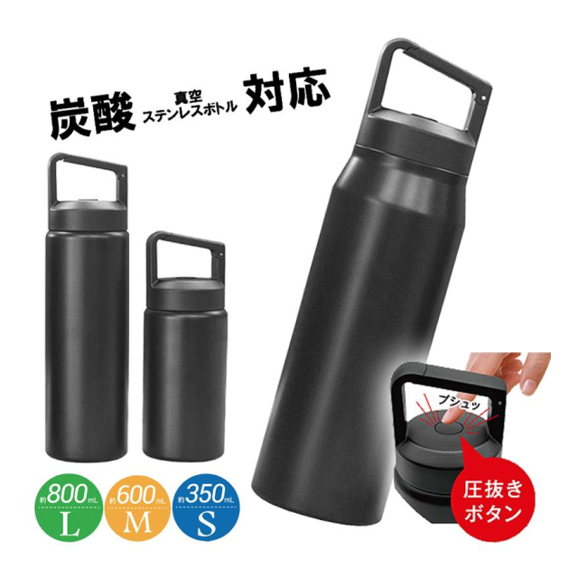 リアル店舗様向け・POPあり・炭酸対応真空ステンレスボトル・保冷用・炭酸飲料対応